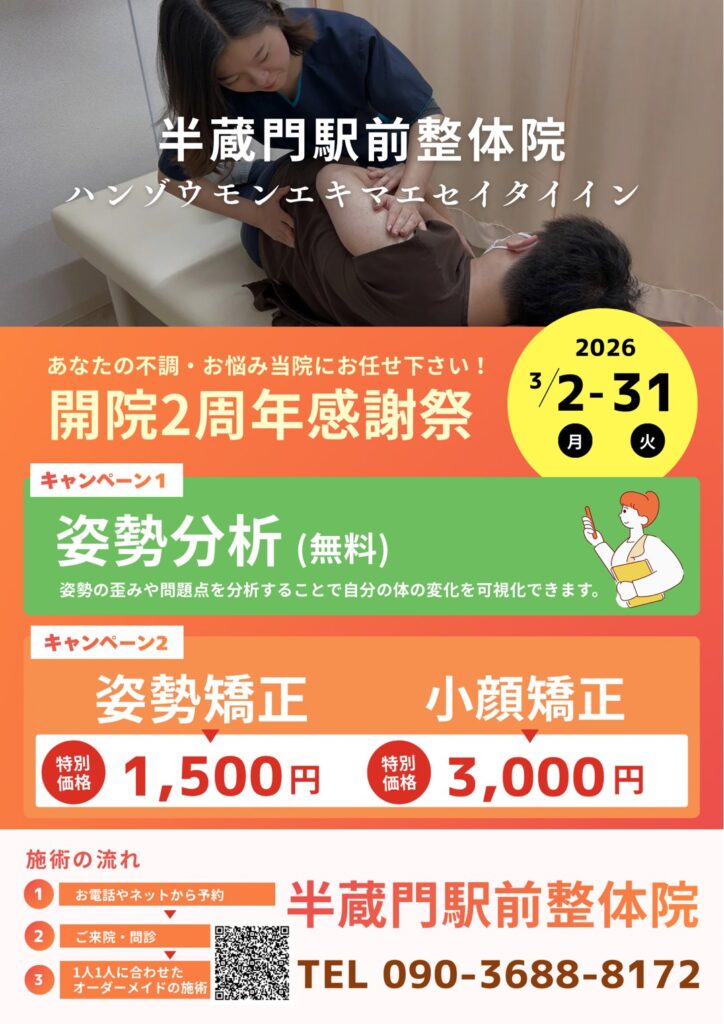 この度、半蔵門駅前整体院がオープンして2年を迎える事が出来ました。